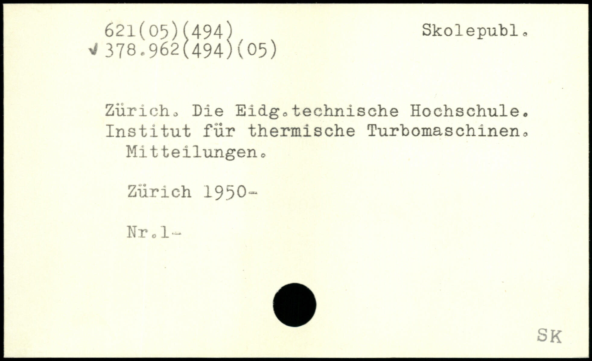 Zürich, Die Eidg,technische Hochschule. Institut für thermische Turbomaschinen, Mitteilungen, Zürich 1950“ Nr o 1-