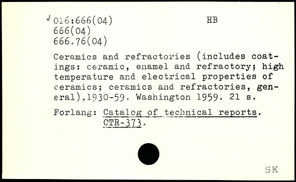 UDK: 016:666(04), 666(04), 666.76(04)