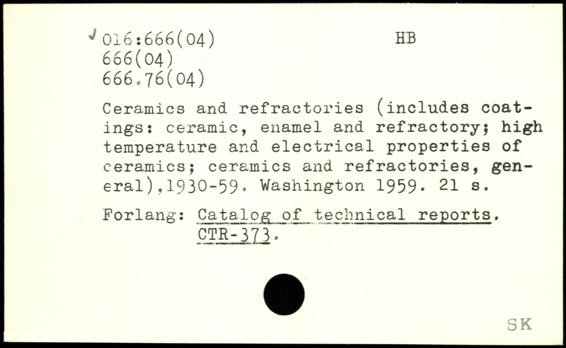 Ceramics and refractories (includes coatings: ceramic, enamel and refractory; high temperature and electrical properties of ceramicsj ceramics and refractories, general ),1930-59.