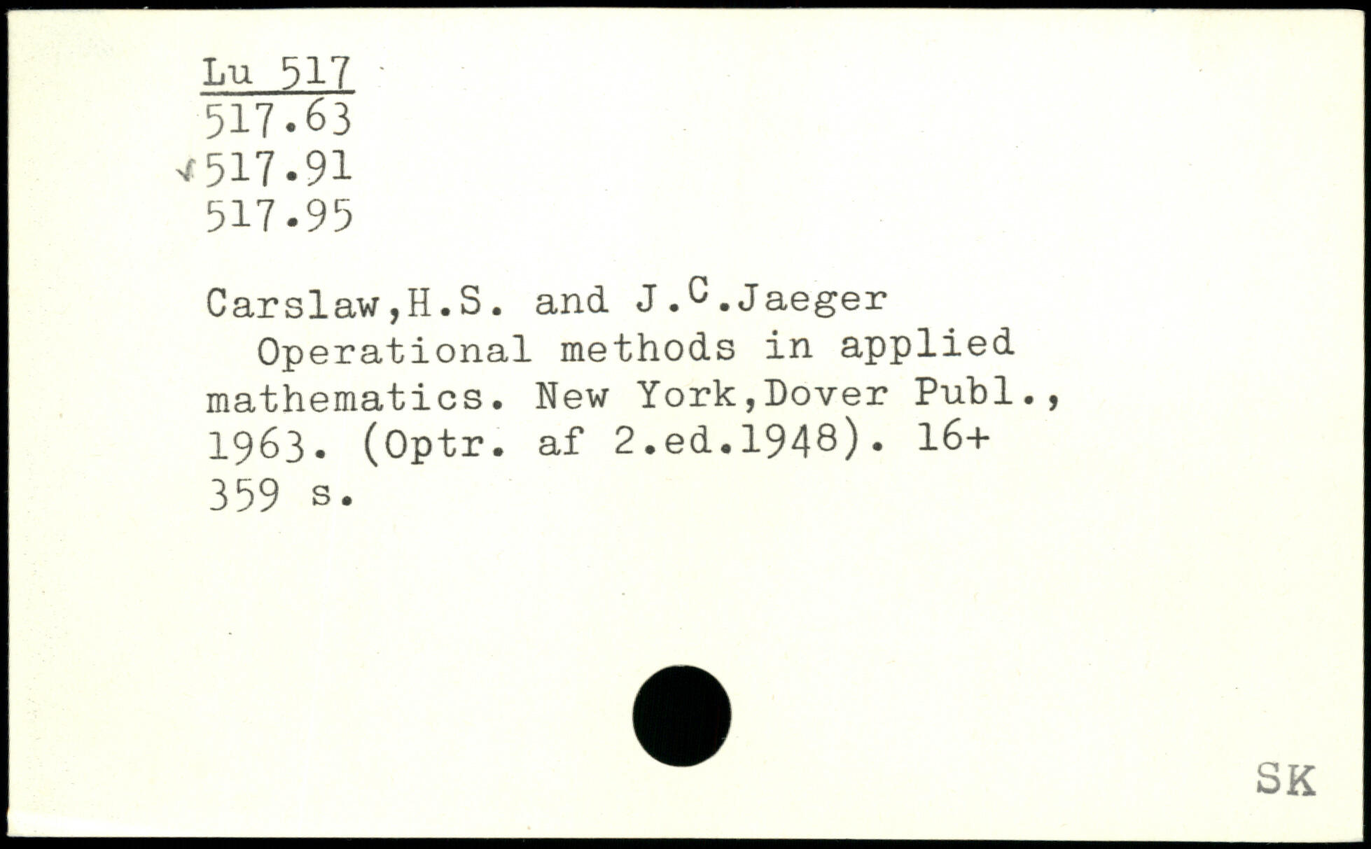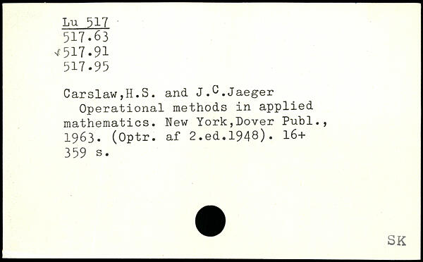 Carslaw,H.S. and J.c.Jaeger Operational methods in applied mathematics.