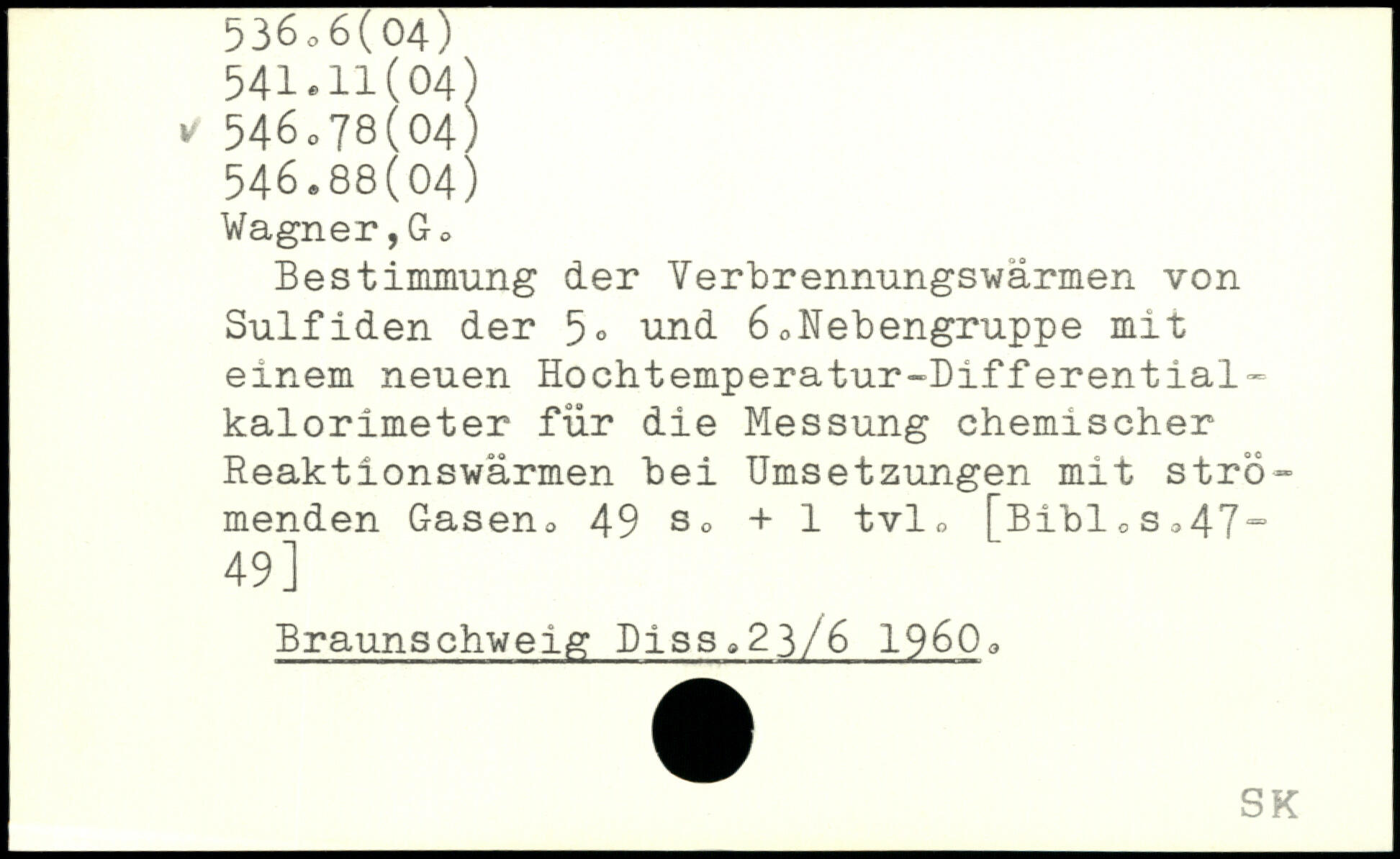 Bestimmung der Verbrennungswärmen von Sulfiden der 5. und 6oNebengruppe mit einem neuen Hochtemperatur-Differentialkalorimeter für die Messung chemischer Reaktionswärmen bei Umsetzungen mit strömenden Gasen0