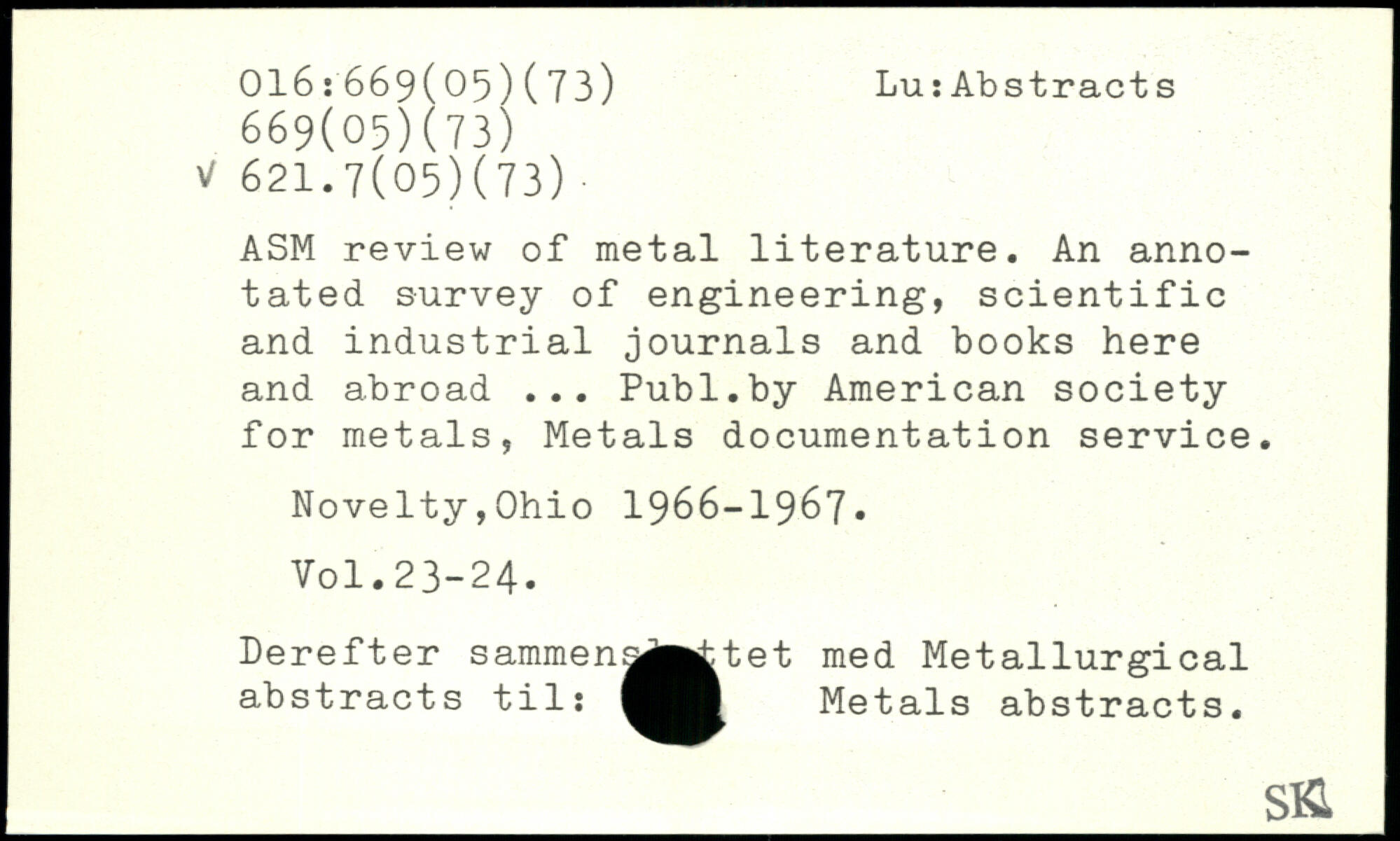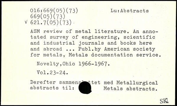 ASM review of metal literature. An annotated survey of engineering, scientific and industrial journals and books here and abroad ...