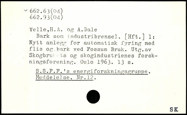 Bark son industribrensel. [Hft.] 1: Nytt anlegg for automatisk fyring med flis og.bark ved Fossum Bruk. Utg.av Skogbrui - ts og skogindustrienes forskningsforening. Oslo 1963.