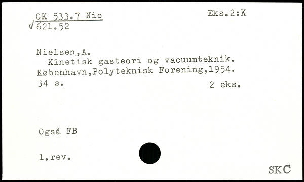 Nielsen.jA. Kinetisk gasteori og vacuumteknik.