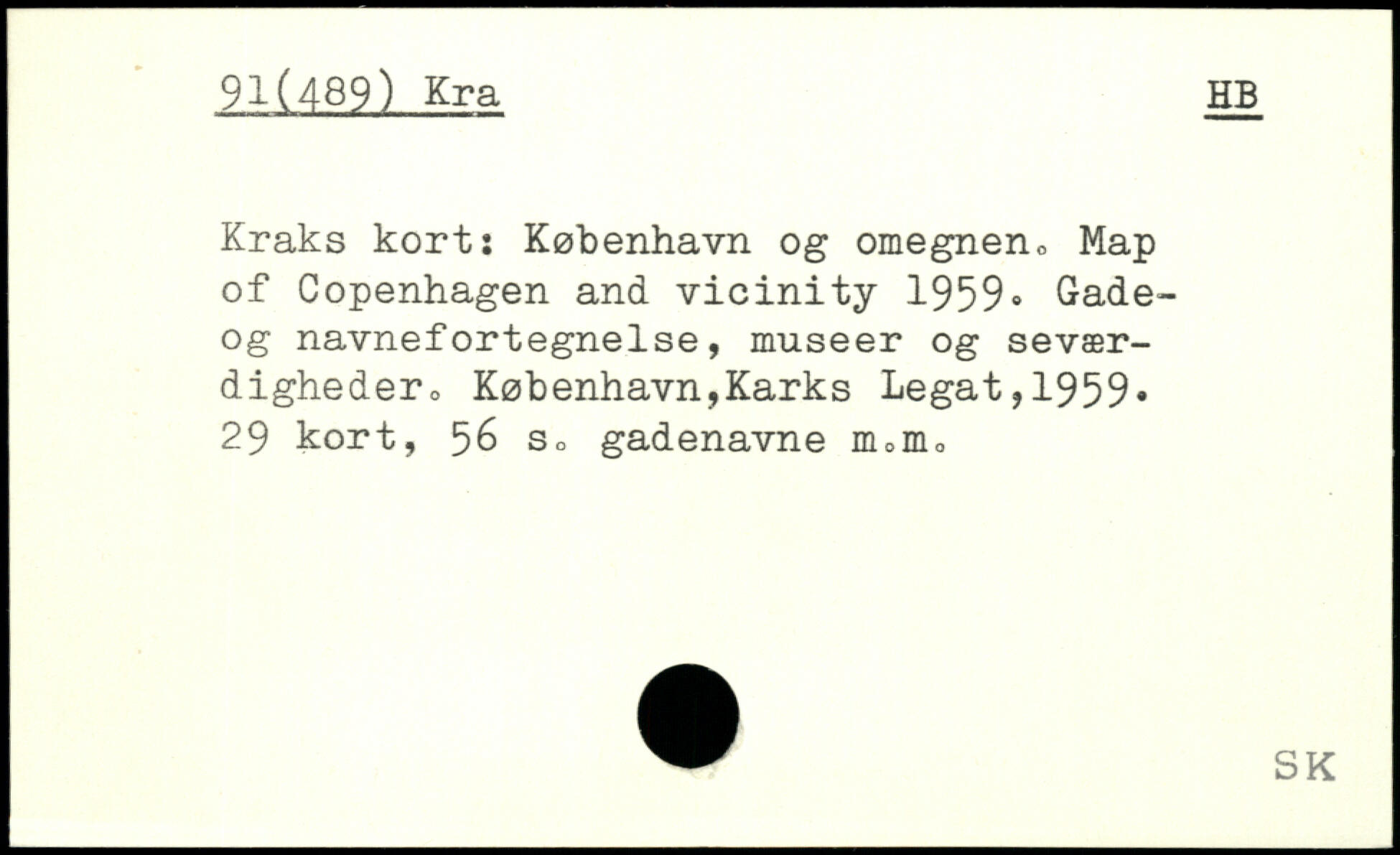 Kraks kort: København og omegnen, Map of Copenhagen and vicinity 1959, Gade-og navnefortegnelse, museer og seværdigheder