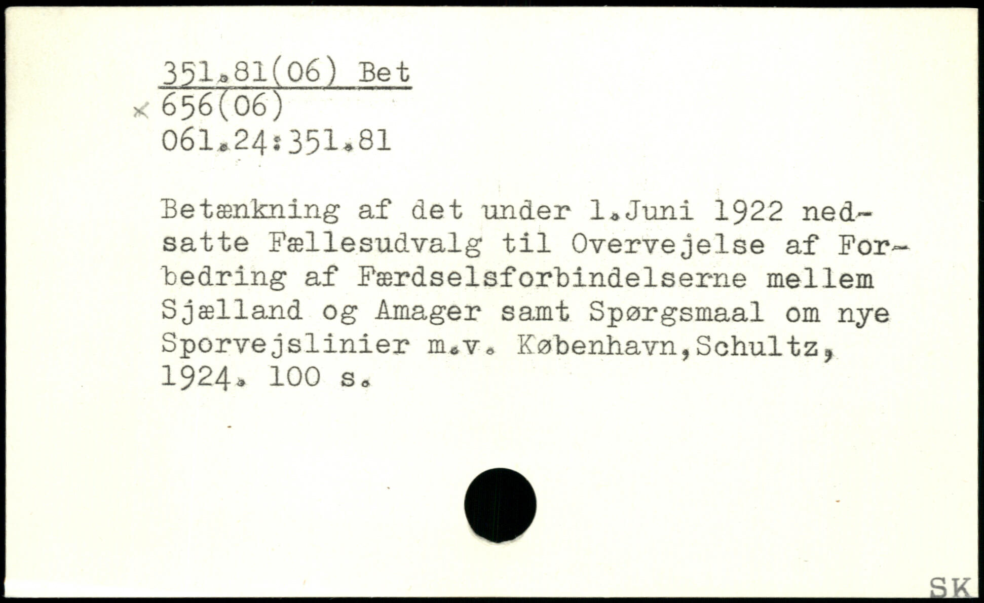 Betænkning af det under l.Juni 1922 nedsatte Fællesudvalg til Overvejelse af For-Bedring af Færdselsforbindelserne mellem Sjælland og Amager samt Spørgsmaal om nye Sporvejslinier m,v8