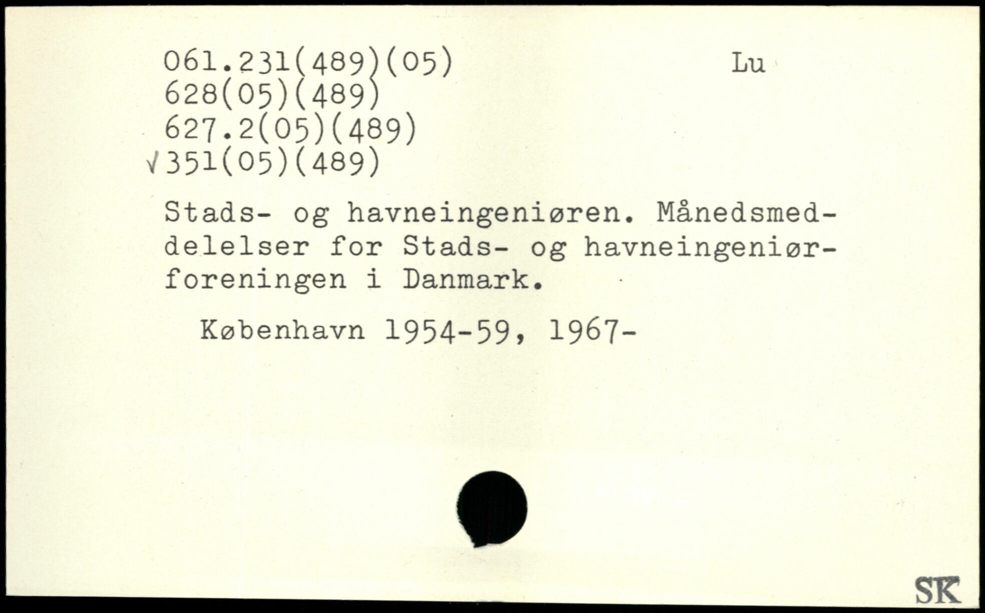 Stads- og havneingeniøren. Månedsmeddelelser for Stads- og havneingeniørforeningen i Danmark.