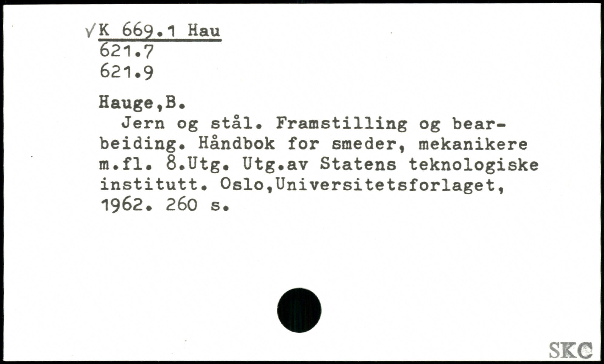 Jern og stål. Fremst1111ng og bear-beiding. Håndbok for smeder, mekanikere m.fl. 8.Utg. Utg.av Statens teknologiske institutt.