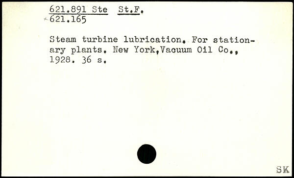 Steam turbine lubrication, For stationary plants, New York,Vacuum Oil Co#f 1928.