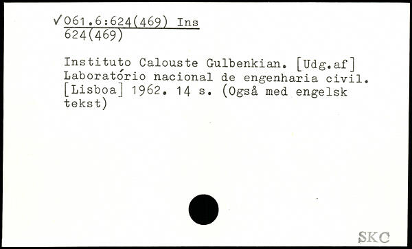 Instituto Calouste Gulbenkian. [Udg.af] Laboratorio nacional de engenharia civil. [Lisboa] 1962.