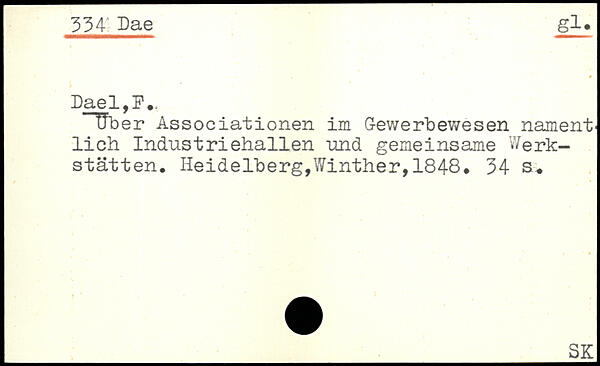 Dael,F., ”"Über Associationen im G-ewerbewesen nament' lieh Industriehallen und gemeinsame Werkstätten.