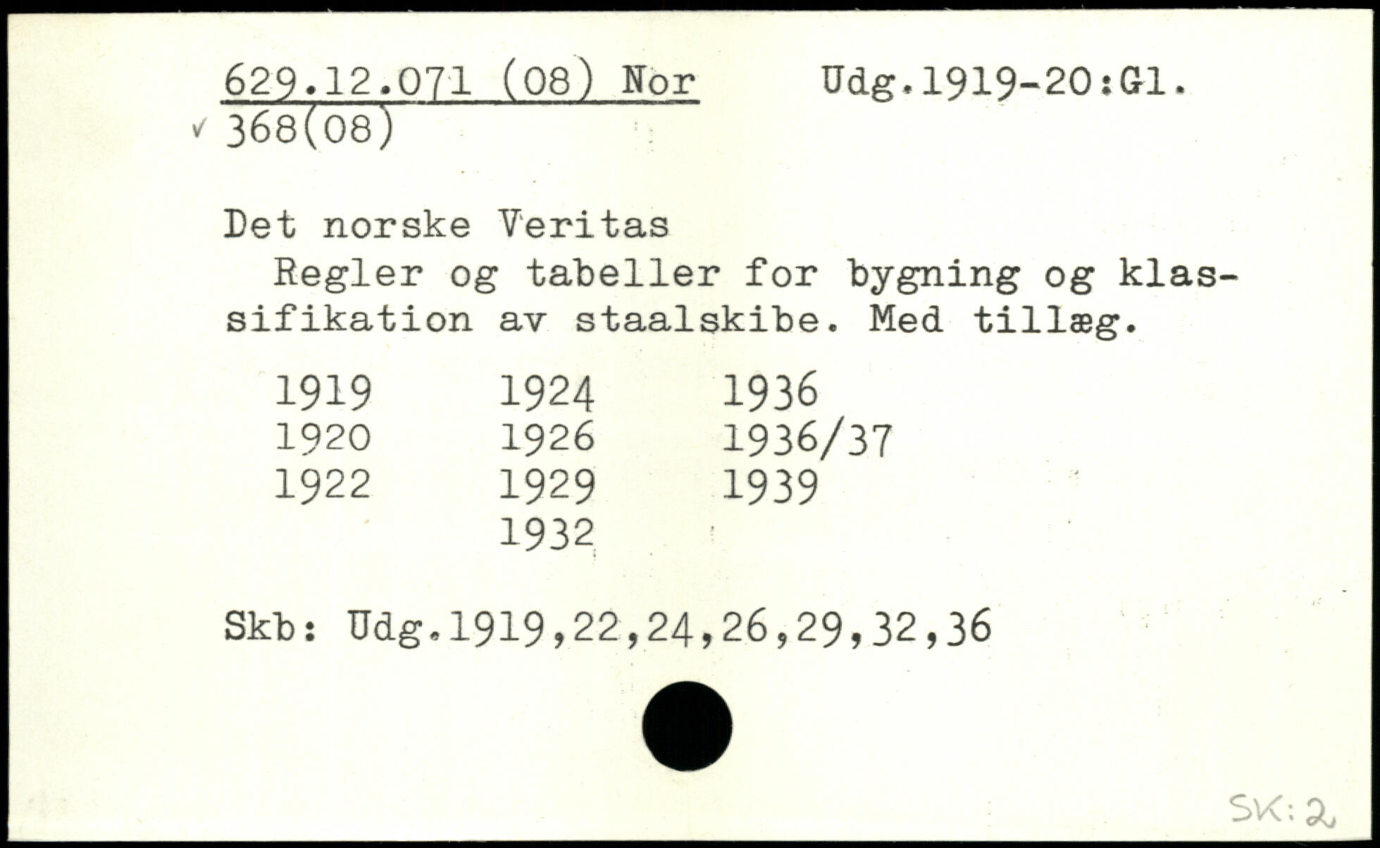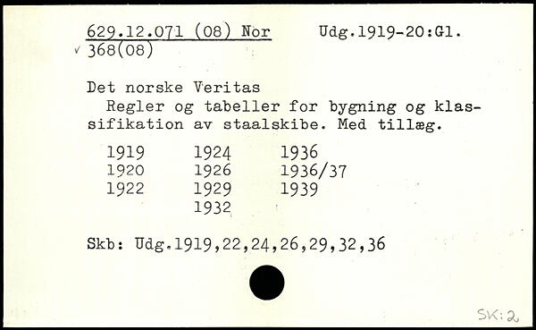 Det norske Veritas Regler og tabeller for bygning og klassifikation av staalskibe. Med tillæg. 1919 1924 1936 1920 1926 1936/37 1922 1929 1939