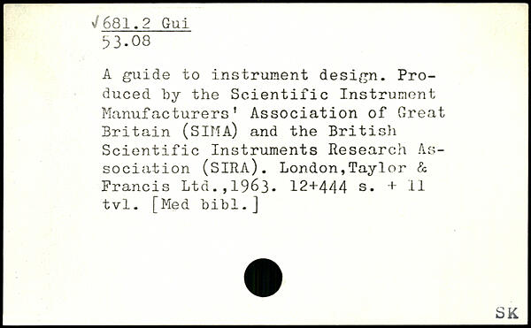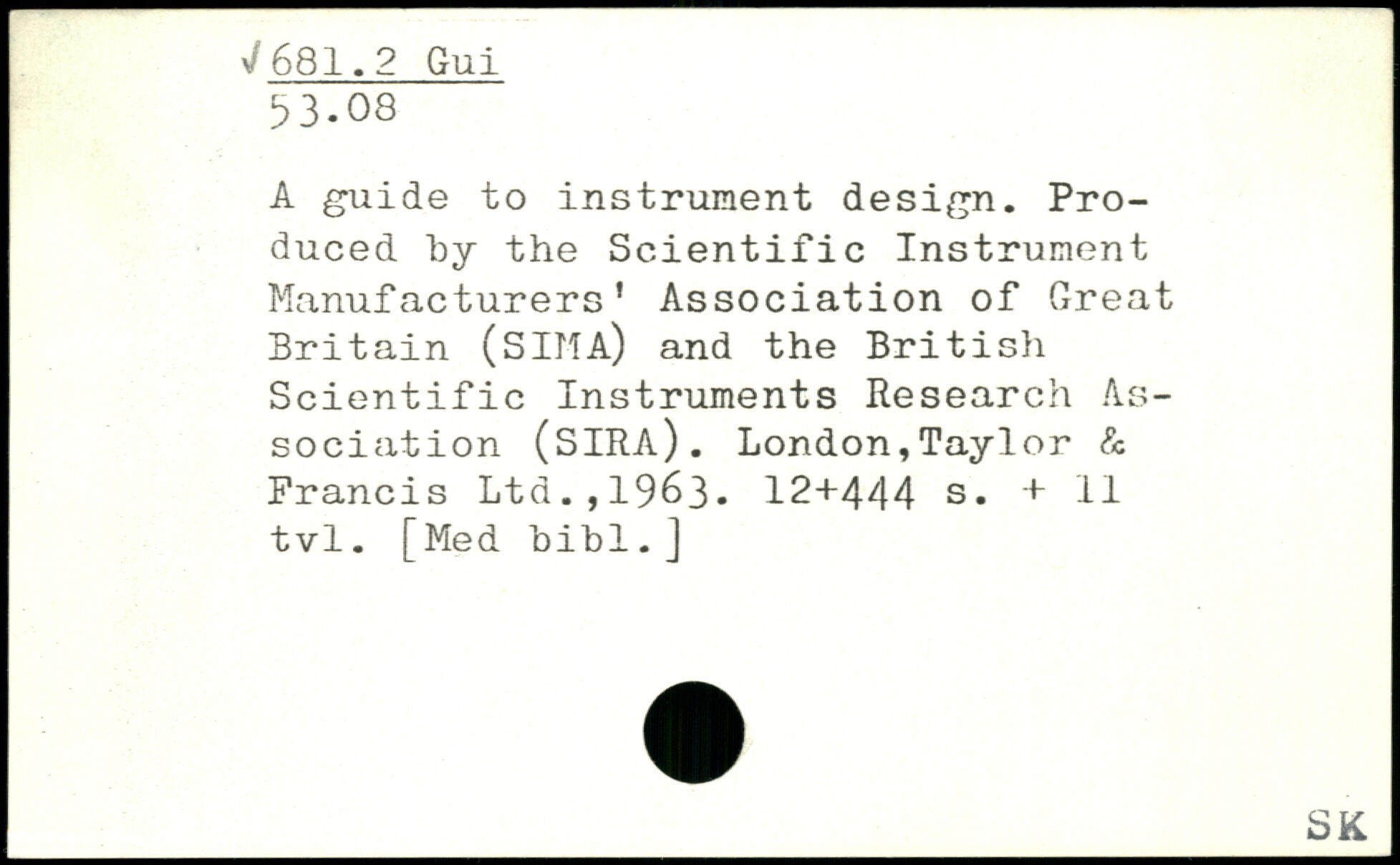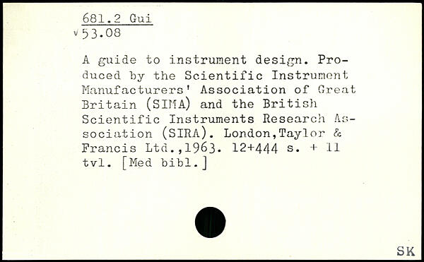 A guide to instrument design. Produced "by the Scientific Instrument Manufacturers’ Association of Great Britain (SIMA) and the British Scientific Instruments Research Association (SIRA).