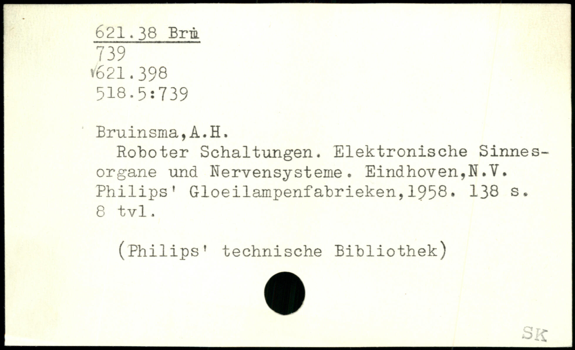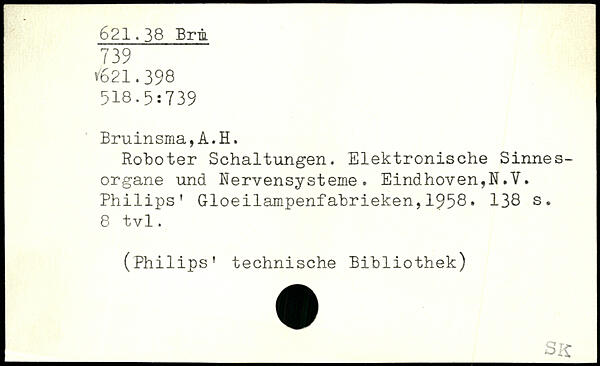 Roboter Schaltungen. Elektronische Sinnesorgane und Nervensysteme. Eindhoven,N.Y. Philips' Gloeilampenfabrieken,1958.