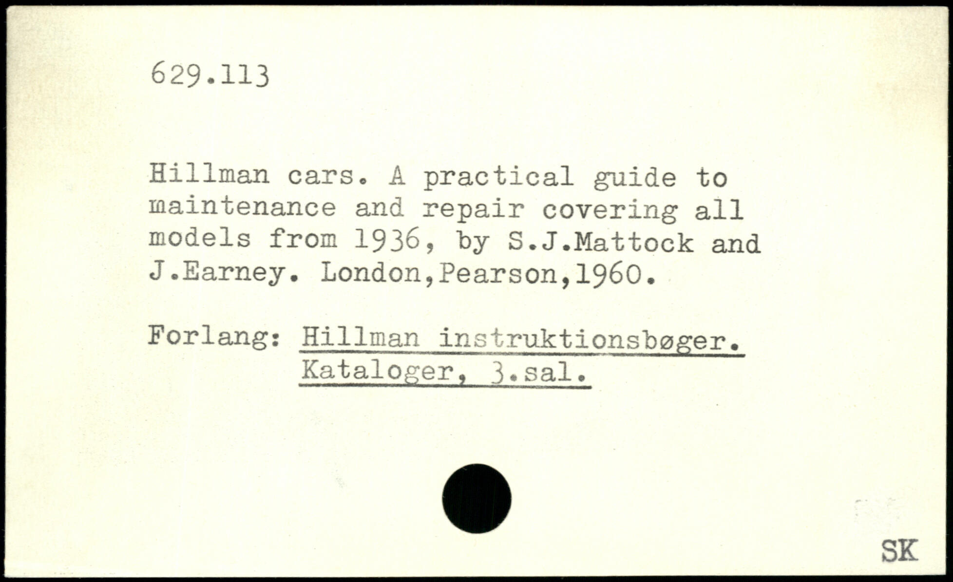 Hillman cars. A practical guide to maintenance and repair covering all models from 1936, by S.J.Mattock and J.Earney.