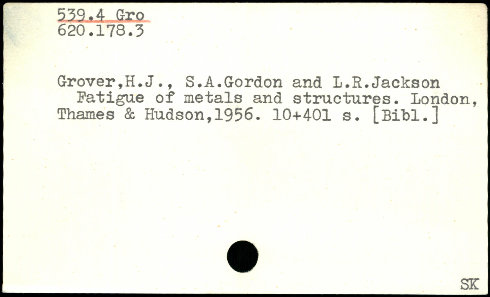 Grover,H.J., S.A.Gordon and L.R.Jackson Fatigue of metals and structures.