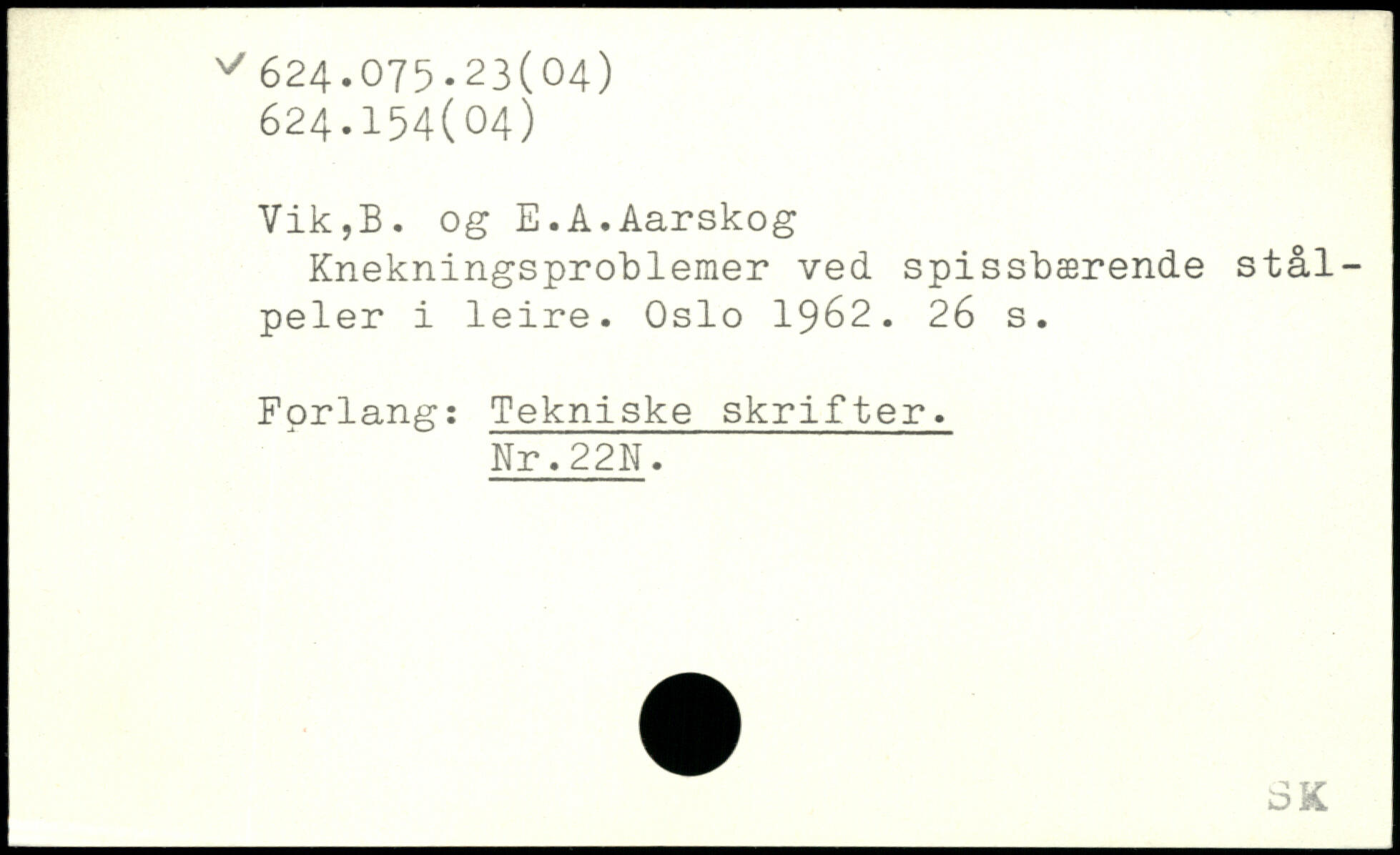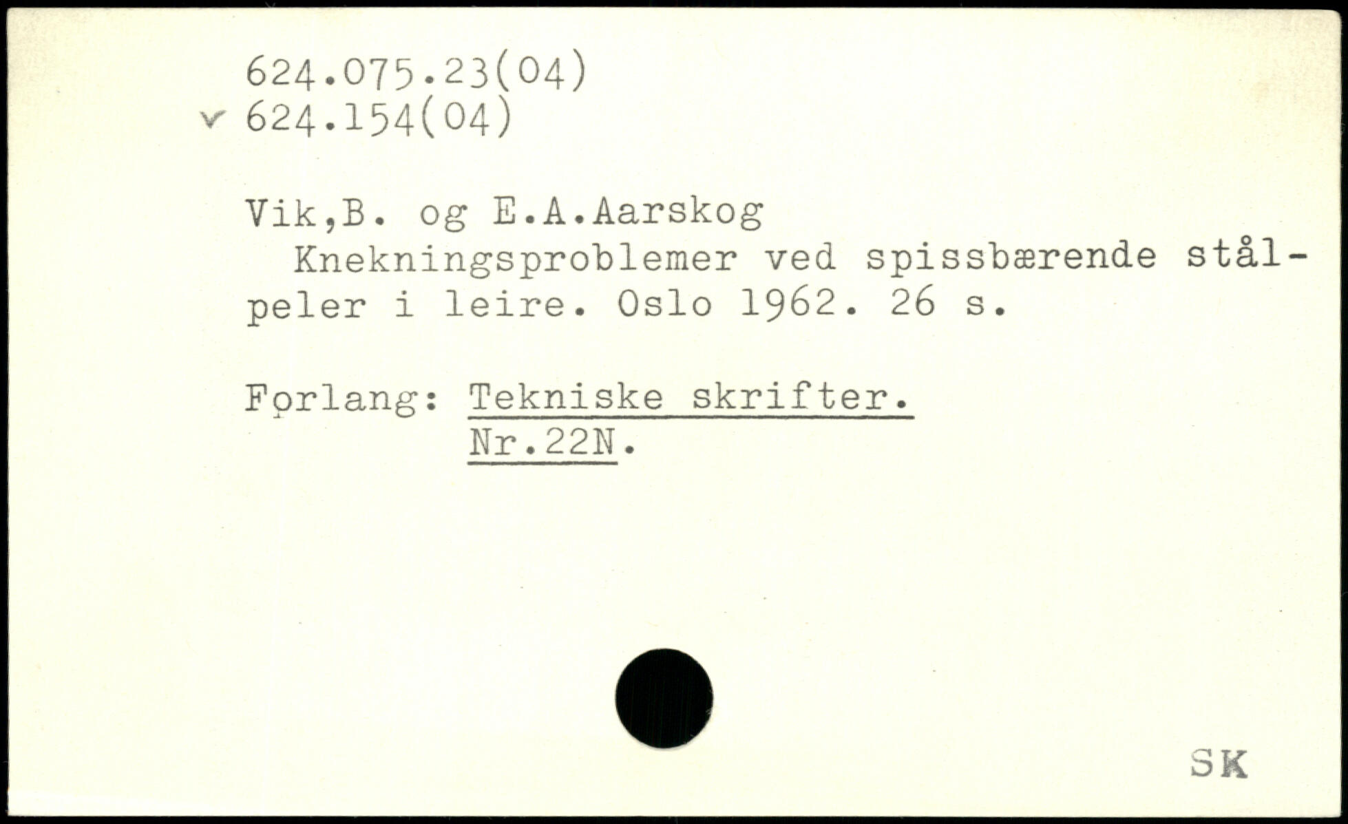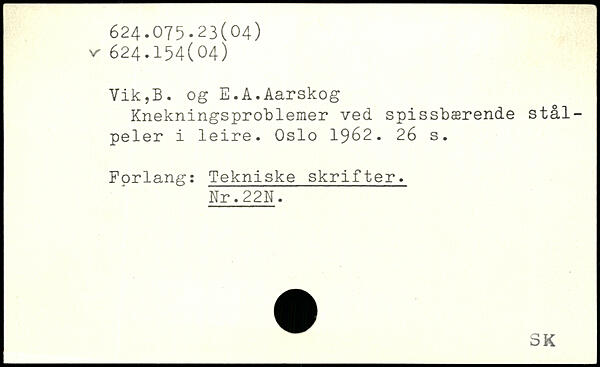Knekningsproblemer ved spissbærende stål-peler i leire. Oslo 1962.