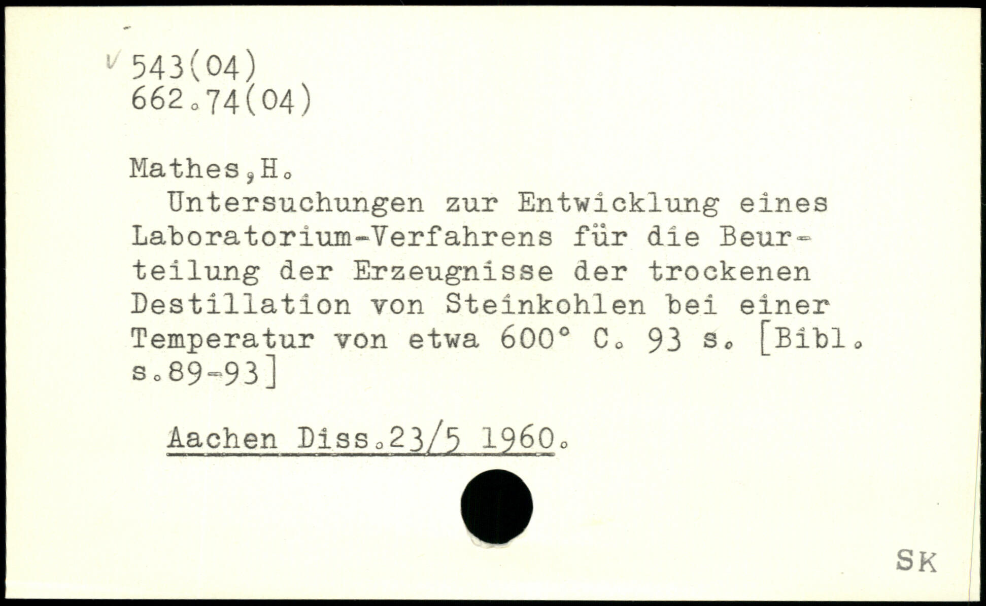 Mathes sHo Untersuchungen zur Entwicklung eines Laboratorium-Verfahrens für die Beurteilung der Erzeugnisse der trockenen Destillation von Steinkohlen bei einer Temperatur von etwa 600. C0