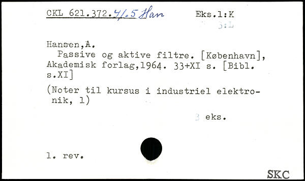 Passive og aktive filtre. [København], Akademisk forlag,1964. 33+XI s.