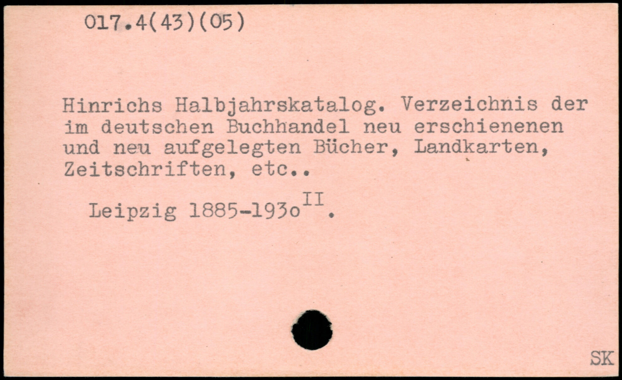 Hinrichs Halhjahrskatalog. Verzeichnis der im deutschen Buchhandel neu erschienenen und neu aufgelegten Bücher, Landkarten, Zeitschriften, etc..