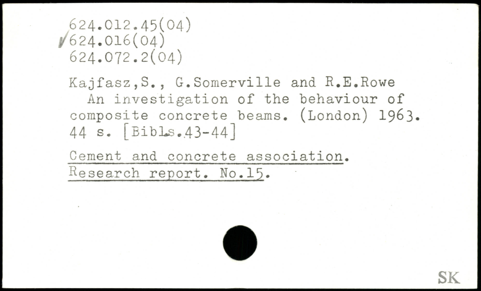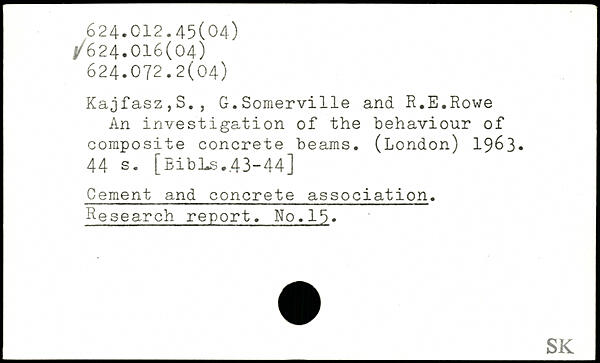 Kajfasz,S., G.Somerville and R.E.Rowe An investigation of the behaviour of composite concrete beams. (London) 1963.