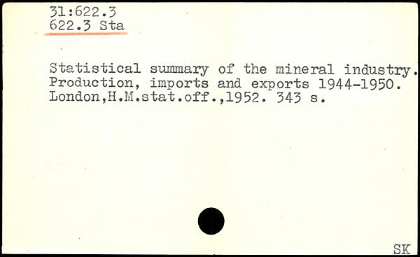 Statistical summary of the mineral industry. Production, imports and exports 1944-1950. London,H.M.stat.off.,1952.
