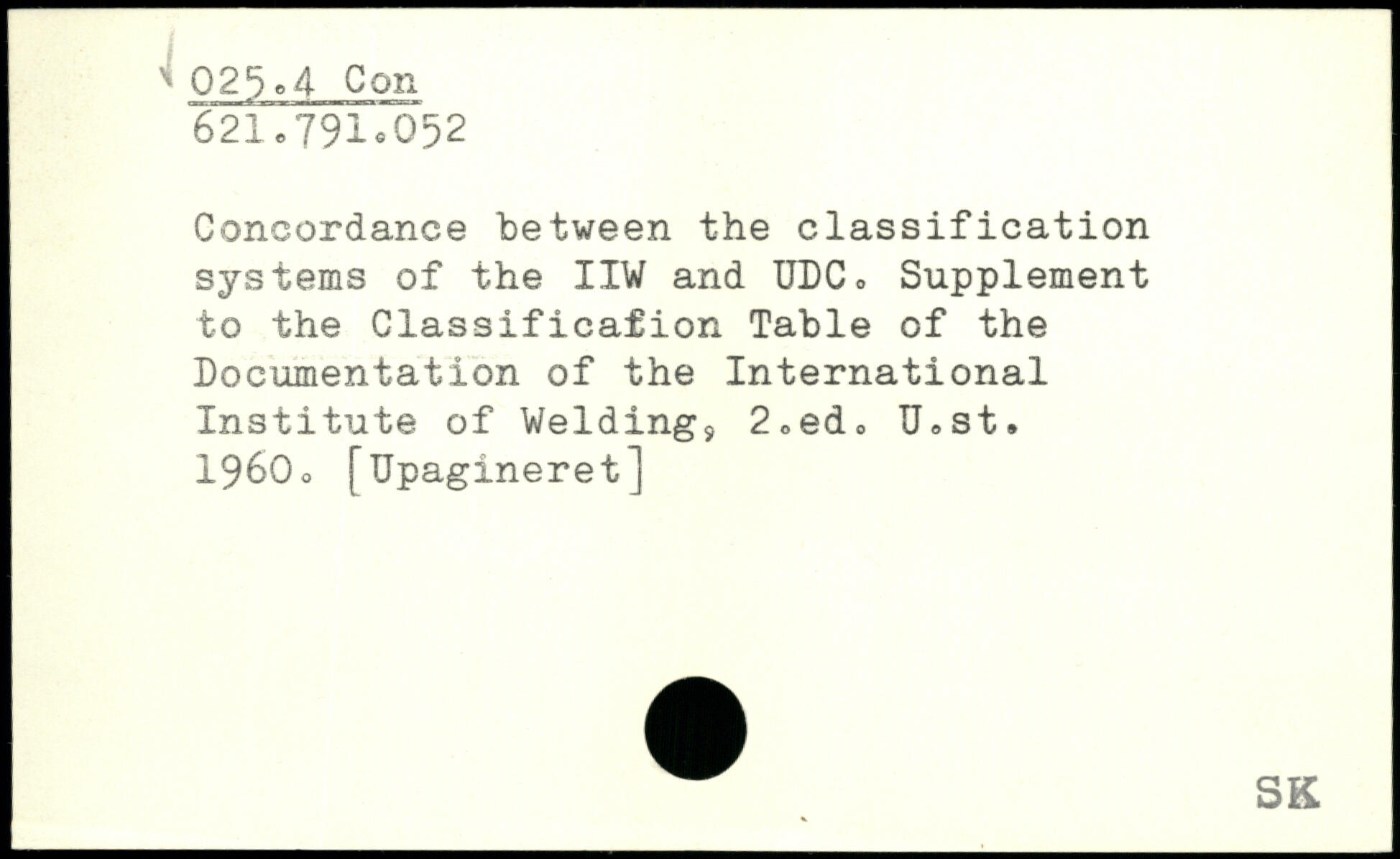 Concordance between the classification systems of the IIW and UDC, Supplement to the Classificafion Table of the Documentation of the International Institute of Welding?