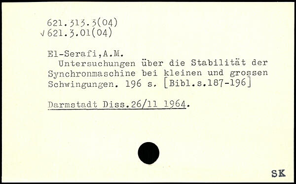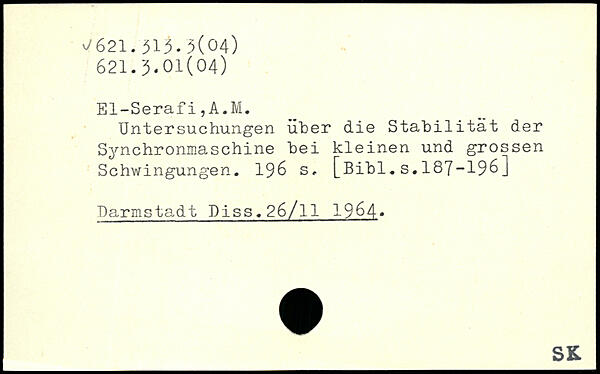 Untersuchungen über die Stabilität der Synchronmaschine bei kleinen und grossen Schwingungen.