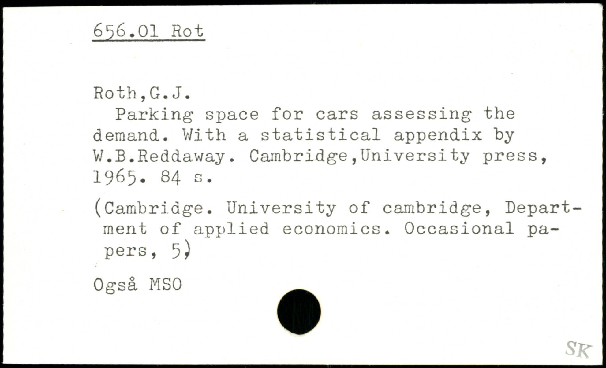 Parking space for cars assessing the demand. V/ith a statistical appendix by W.B.Reddaway.