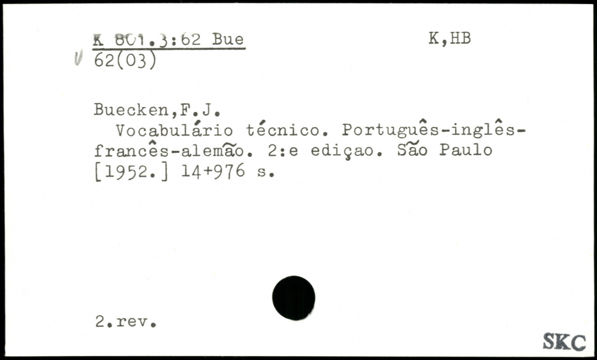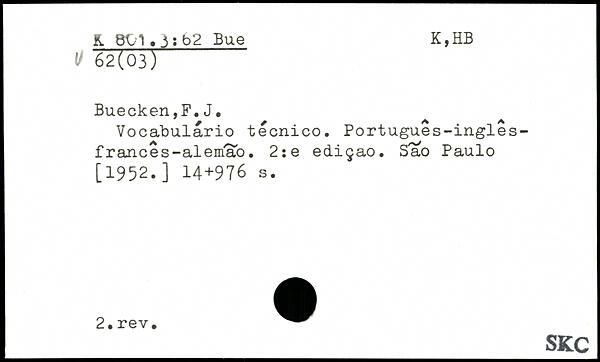 Vocabulario tecnico. Portugues-ingles-frances-alemao. 2ie ediçao. Sao Paulo [1952.]