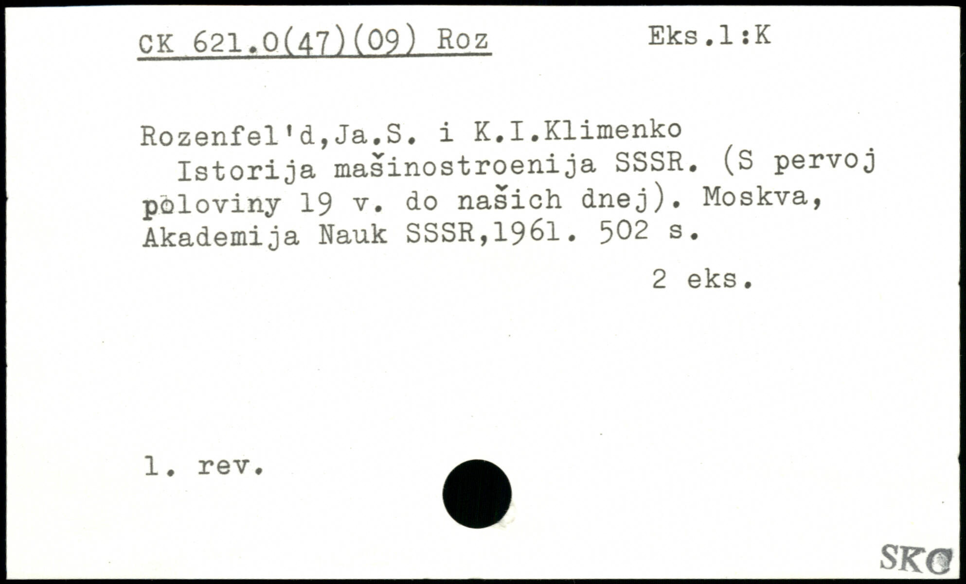 Rozenfel’d,Ja.S. i K.I.Klimenko Istorija masinostroenija SSSR. (S pervoj poloviny 19 v. do nasich dnej).
