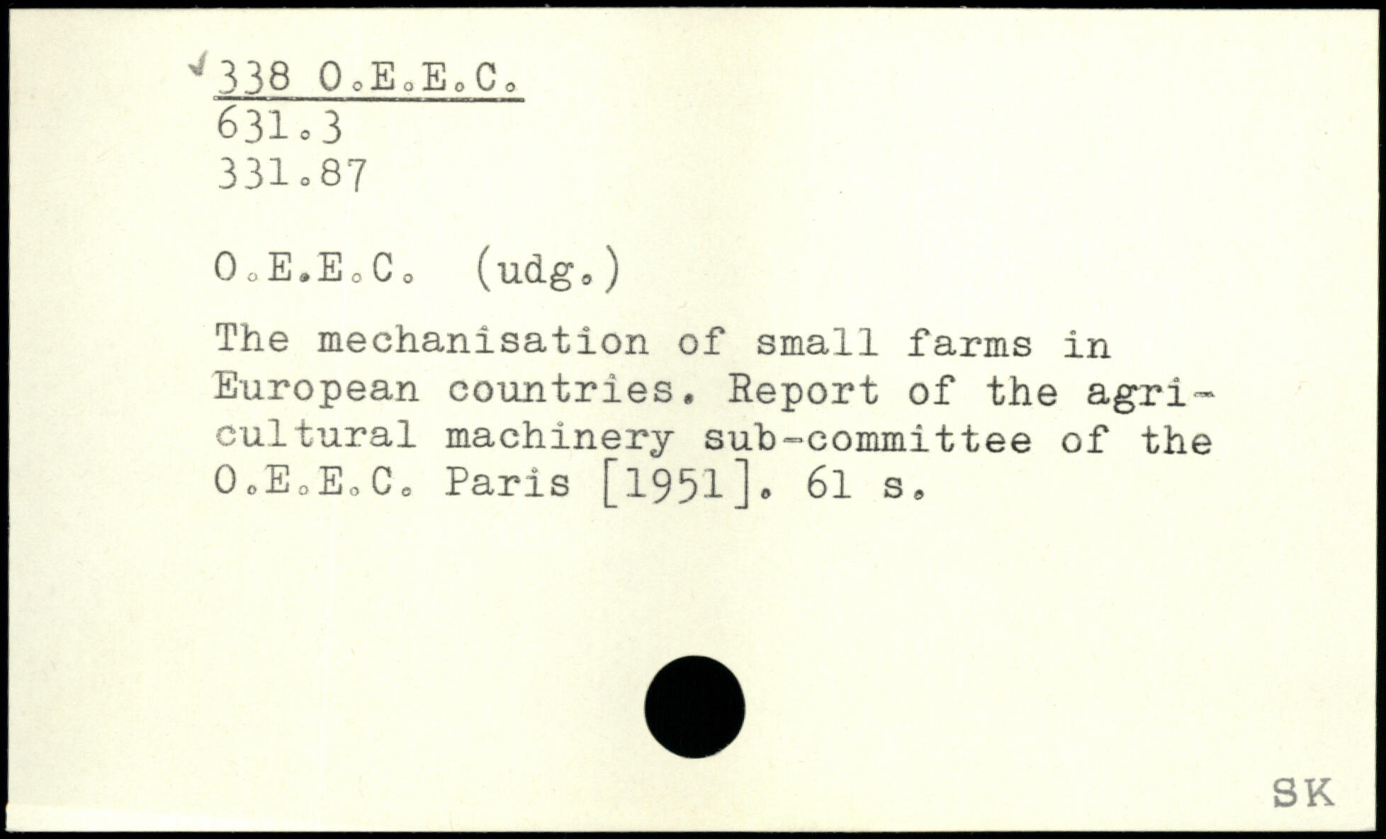 The mechanisation of small farms in European countries. Report of the agricultural machinery sub-committee of the OoEoEoCo