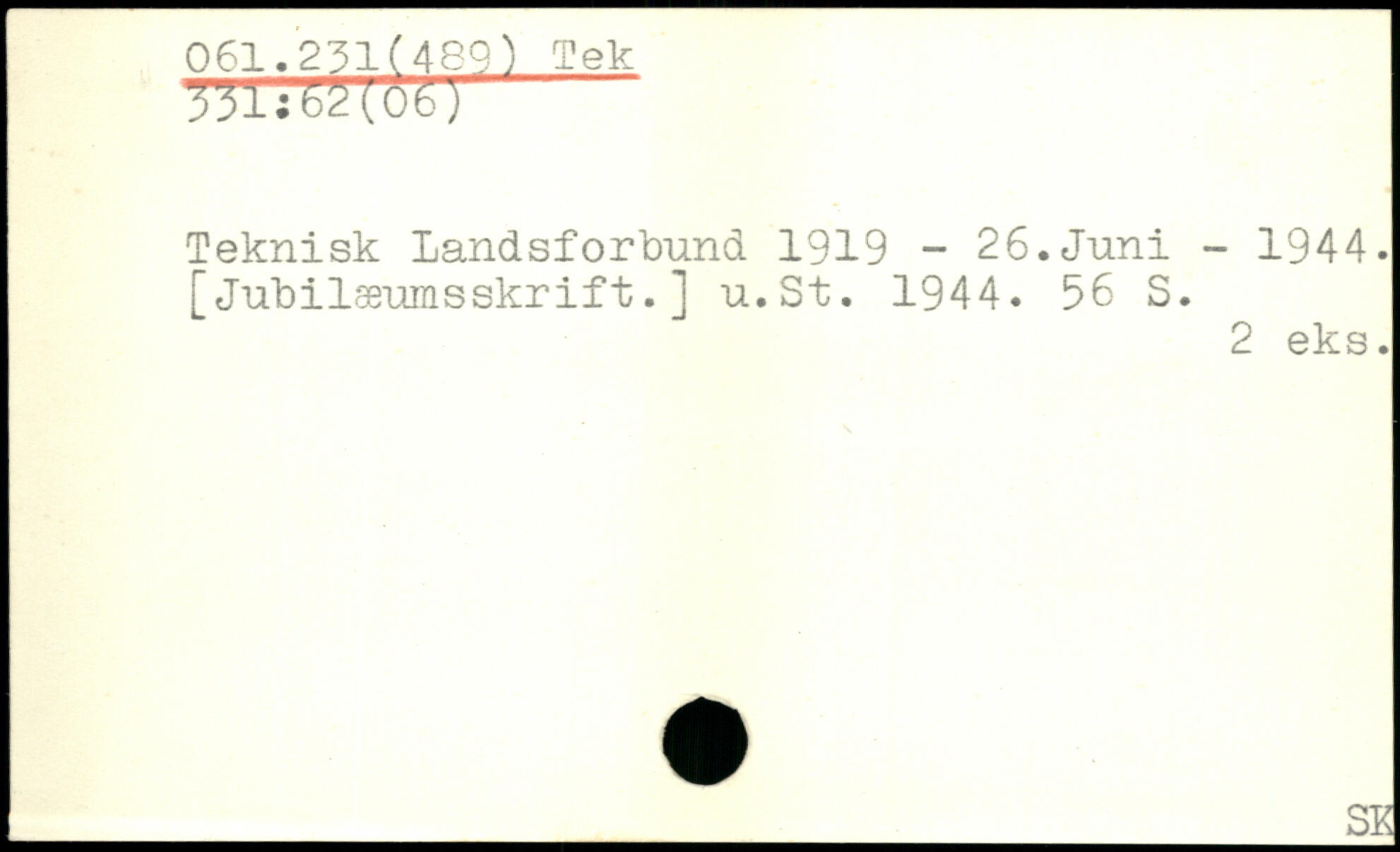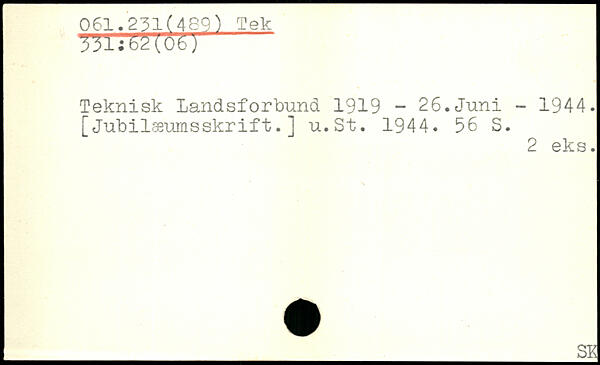 Teknisk Landsforbund 1919 - 26.Juni - 1944. [Jubilæumsskrift.] u.St. 1944.