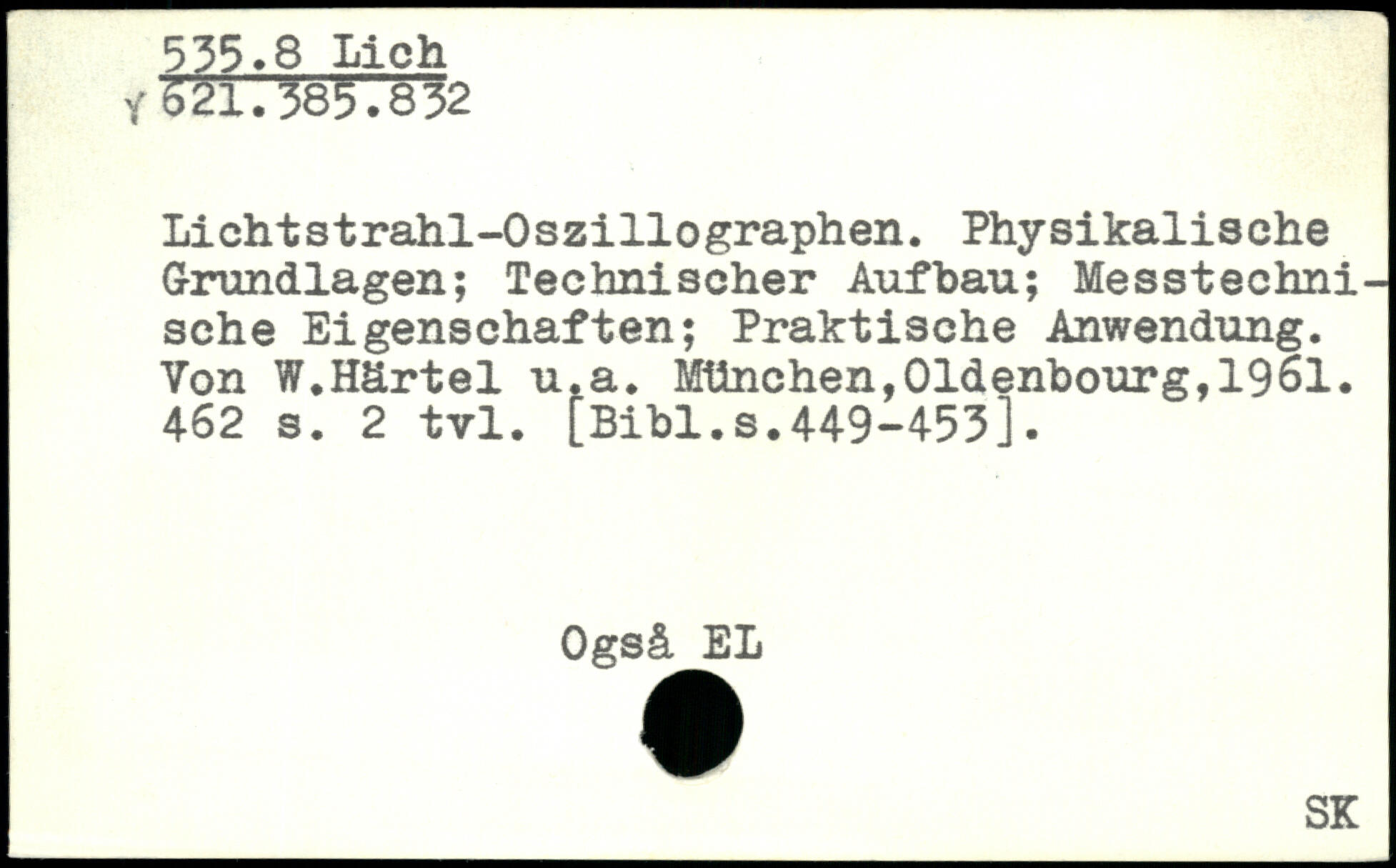 Lichtstrahl-Oszillographen. Physikalische Grundlagen; Technischer Aufbau; Messtechnische Eigenschaften; Praktische Anwendung. Von W.Härtel u.a.