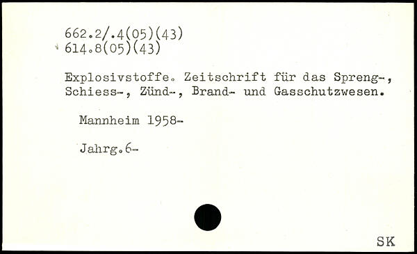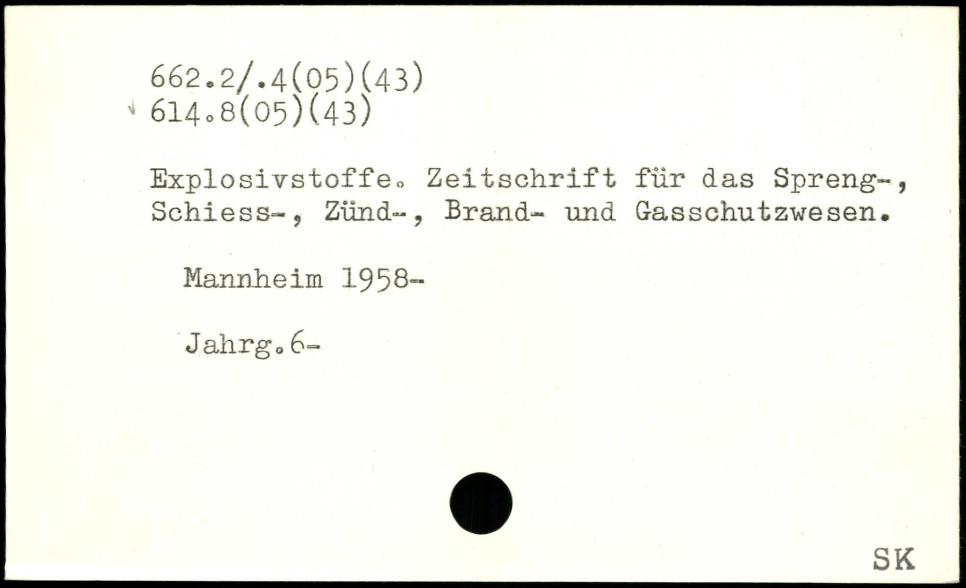 Explosivstoffe, Zeitschrift für das Spreng-, Schiess-, Zünd-, Brand- und Gasschutzwesen, Mannheim 1958” Jahrgo 6-