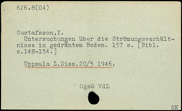 Untersuchungen über die StrömungsVerhältnisse in gedräntem Boden.
