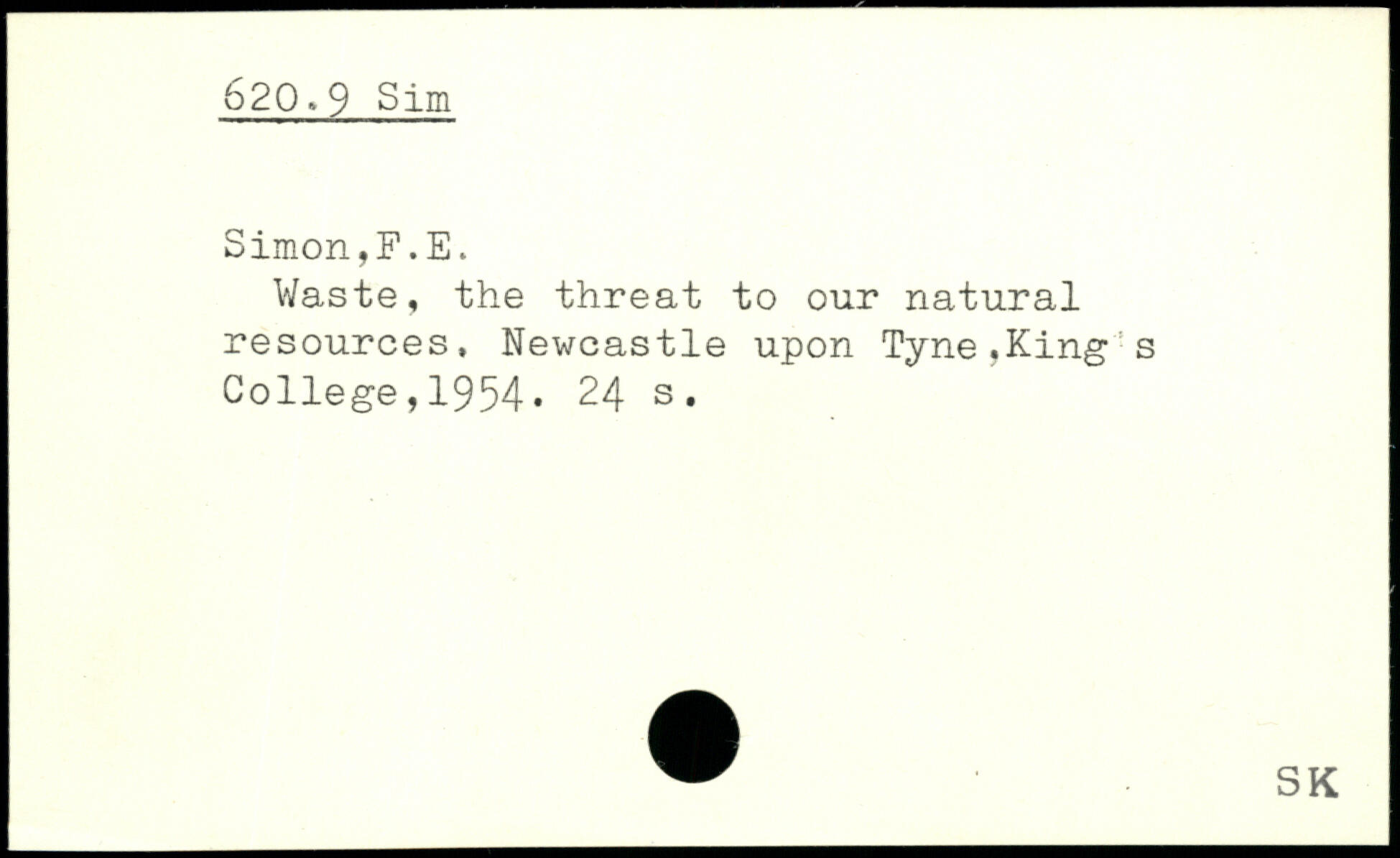 Waste, the threat to our natural resources, Newcastle upon Tyne.King's College,1954.