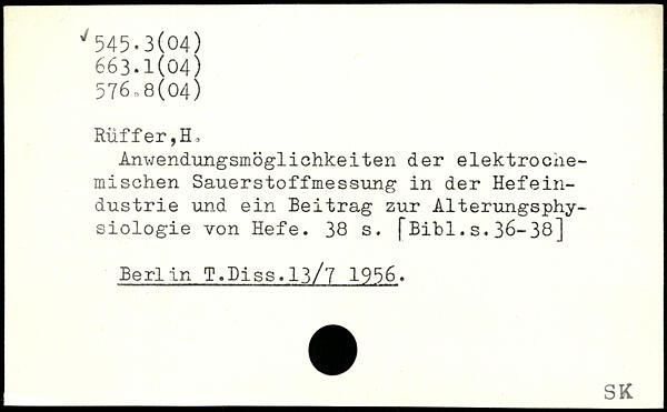 Anwendungsmöglichkeiten der elektrochemischen Sauerstoffmessung in der Hefeindustrie und ein Beitrag zur Alterungsphysiologie von Hefe.