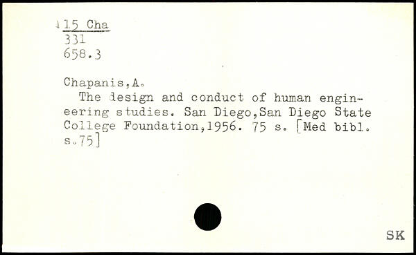 The design and conduct of human engineering studies. San Diego,San Diego State College Foundation,1956.