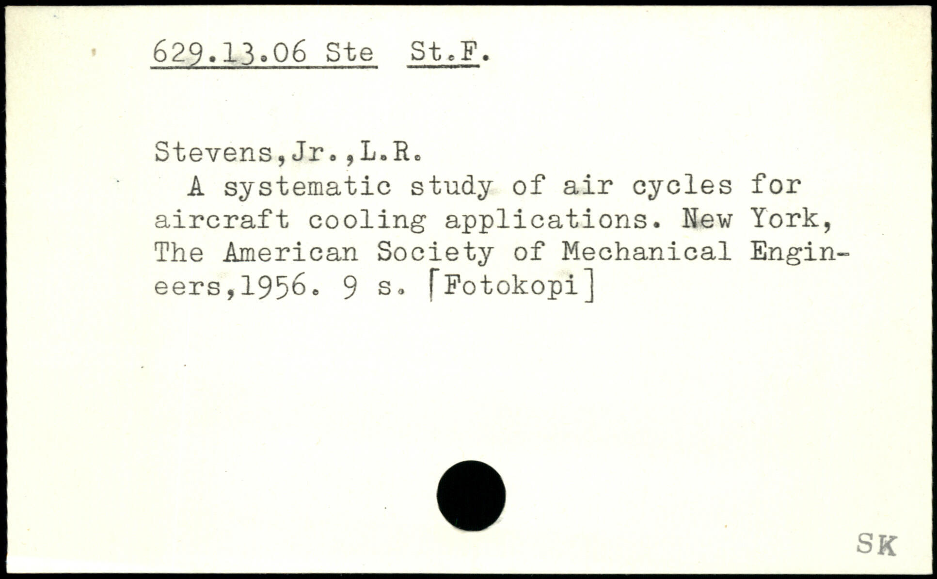 A systematic study of air cycles for aircraft cooling applications. New York, The American Society of Mechanical Engineers, 1956.