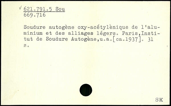 Soudure autogène oxy-acêtylènique de l'aluminium et des alliages légers, Paris,Institut de Soudure Autogène,uDaD[ca01937J. 31