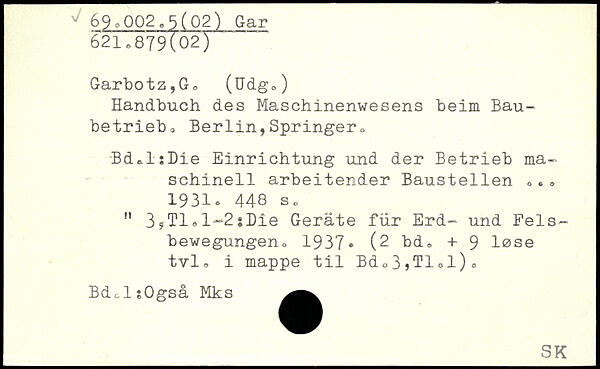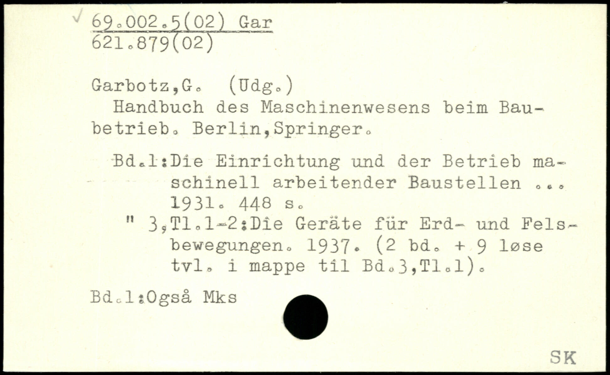 Garbotz,(üdg.) Handbuch des Maschinenwesens beim Baubetrieb, Berlin,Springer. Bd.liDie Einrichtung und der Betrieb maschinell arbeitender Baustellen ,. , 1931.