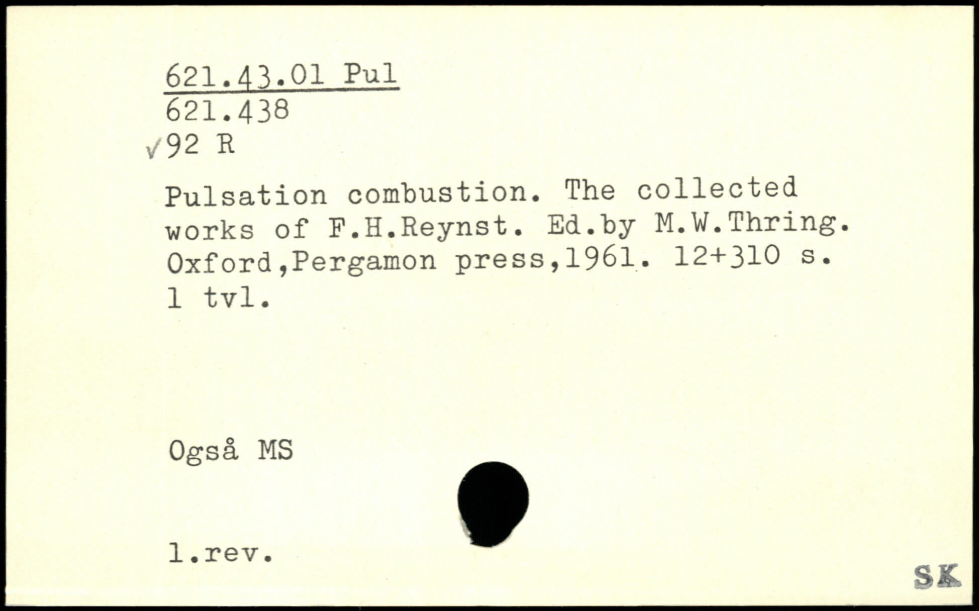 Pulsation combustion. The collected works of F.H.Reynst. Ed.by M.W.Thring. OxfordjPergamon press,1961.