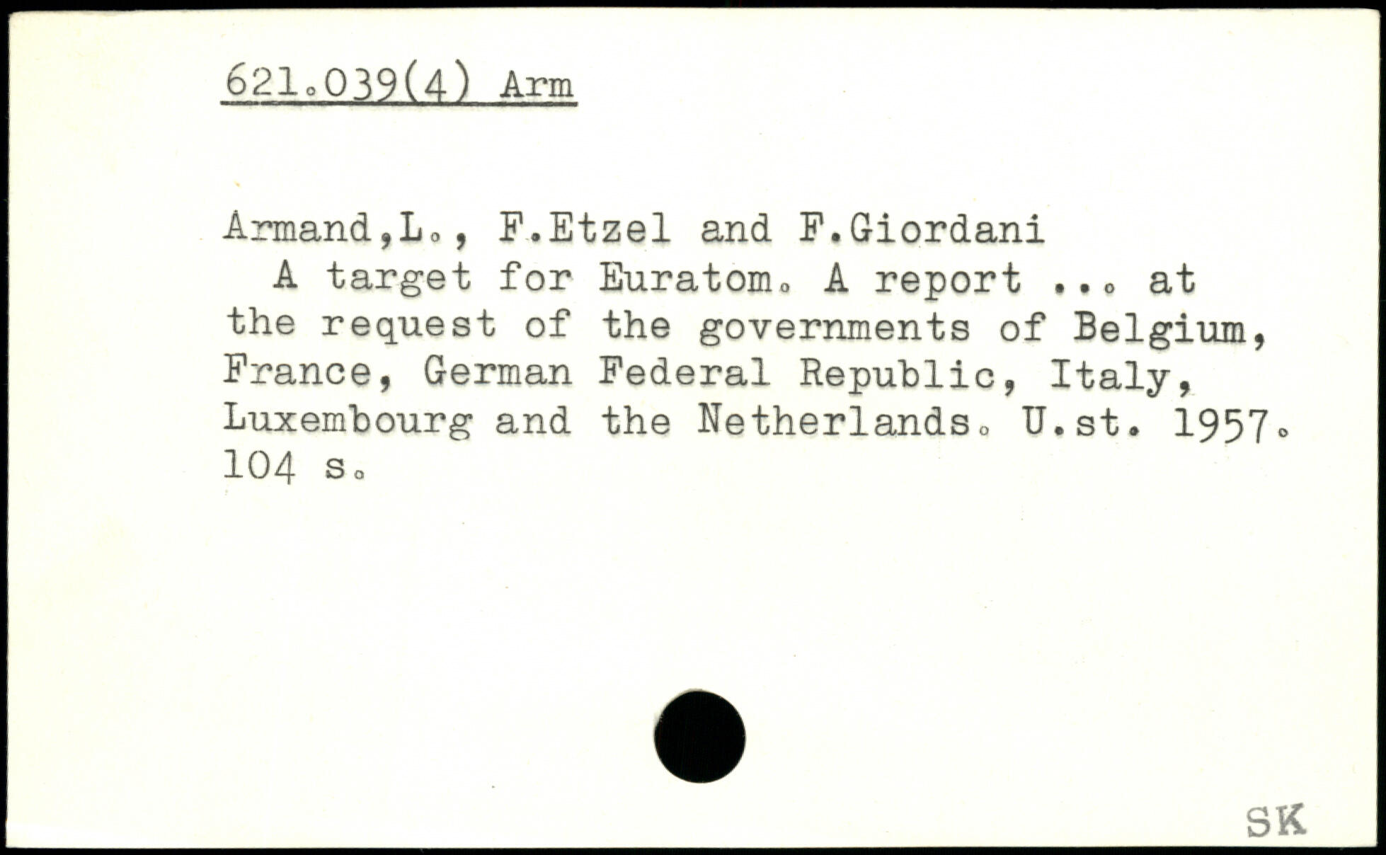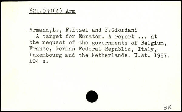 A target for Euratom. A report ..o at the request of the governments of Belgium, France, German Federal Republic, Italy, Luxembourg and the Netherlands, U.st. 1957