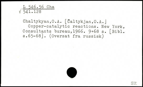 Chaltykyan,0.A. [Caltykjan,0.A.j Copper-catalytic reactions.