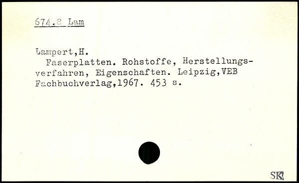 Faserplatten. Rohstoffe, Herstellungsverfahren, Eigenschaften. Leipzig,VEB Fachbuchverlag, 1%7.