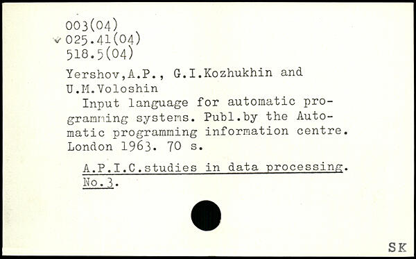 Forfatter: A.P. Yershov, G.I. Kozhukhin, U.M. Voloshin