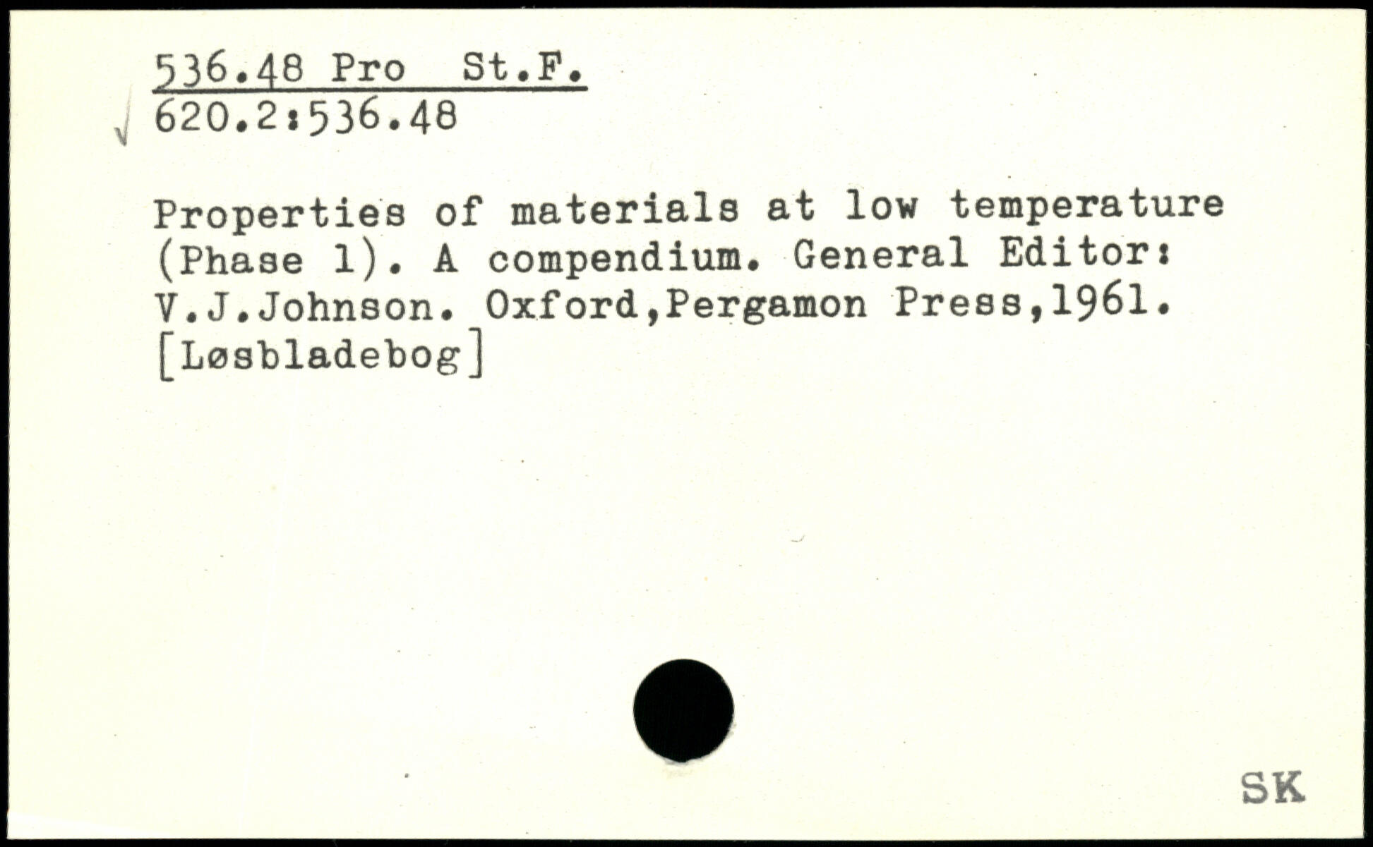 Properties of materials at low temperature (Phase l). A compendium. General Editor. V.J.Johnson.