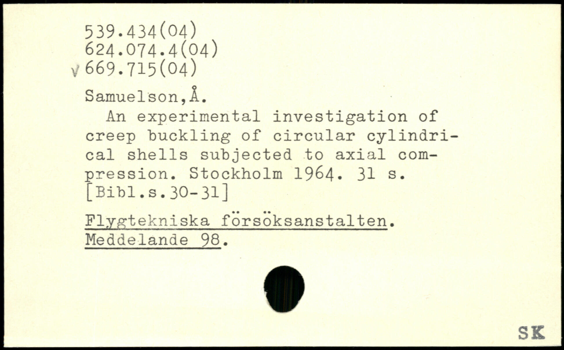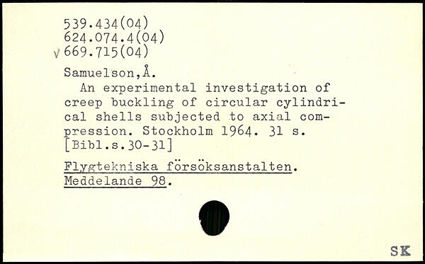 An experimental investigation of creep tuckling of circular cylindrical shells subjected to axial compression. Stockholm 19&4