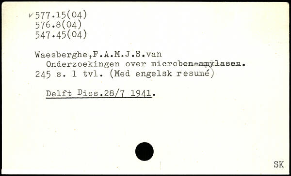 Waesberghe,F.A.M.J.S.van Onderzoekingen over microbeneamylasen.
